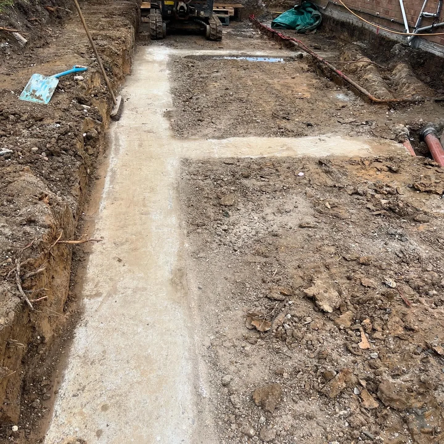 Excavation of 2400mm deep trenches, with installation of clay master heave protection